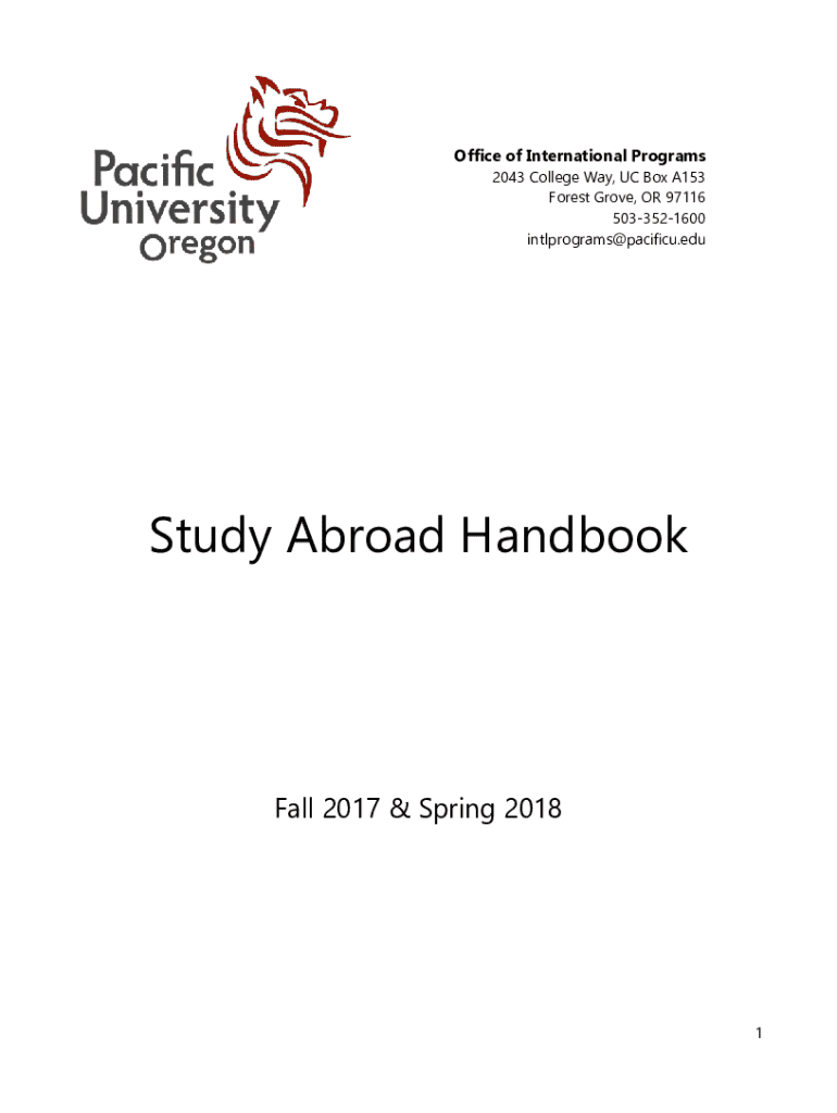 Office of International Programs 2043 College Way, UC Box A153 Forest Grove, OR 97116 5033521600 intlprograms@pacificu.eduStudy Abroad HandbookFall 2017 & Spring 20181Table of Contents(All headings