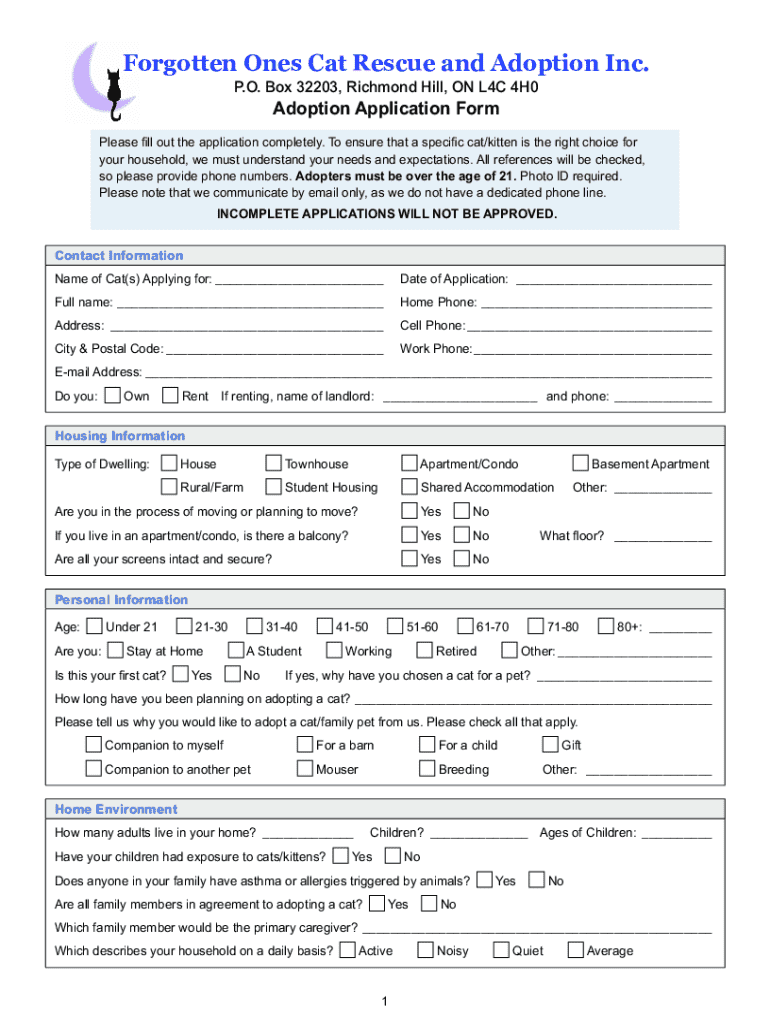 Get the free Download an Adoption Application - Forgotten Ones Cat ...