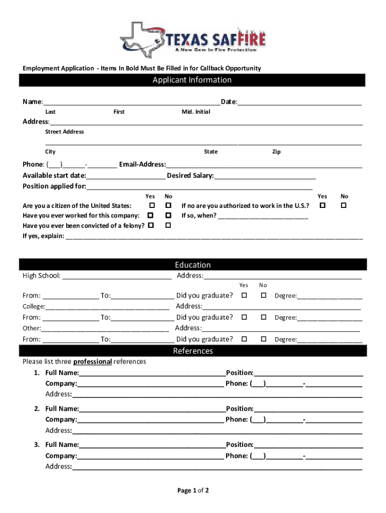 Employment Application Items In Bold Must Be Filled in for Callback OpportunityApplicant Information