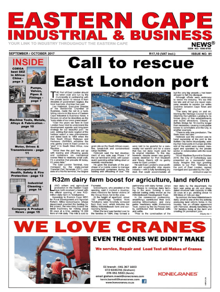 INDUSTRIAL & BUSINESS NEWS YOUR LINK TO INDUSTRY THROUGHOUT TlIE EASTERN CAPEISSN NO: 19969708SEPTEMBER I OCTOBER 2017INSIDEcoeGAbest Sl!Z in Africa: Chin.page3Pumps,Val,Pipes & FittingsPee7llchine