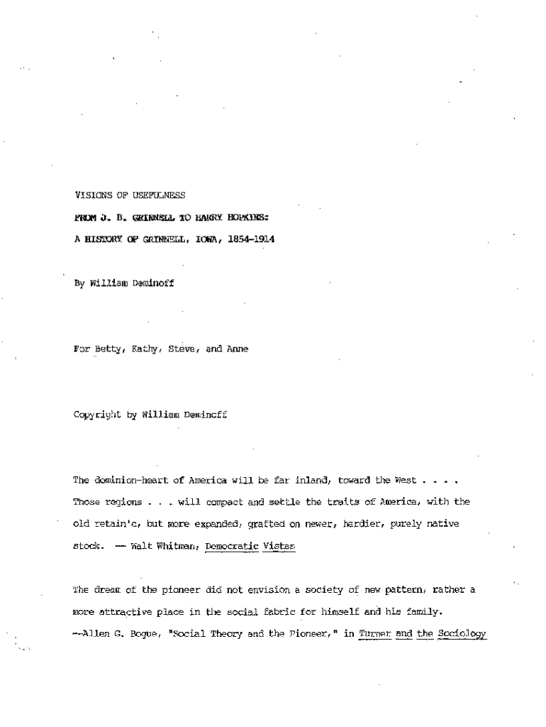 Get the free VISIONS OF USEFULNESS By William Deminoff For Betty, Kathy ... - grinnell lib ia