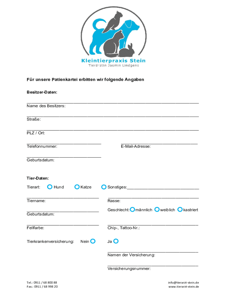 Holen Sie sich kostenlos Fr unsere Patienkartei erbitten wir folgende Angaben
