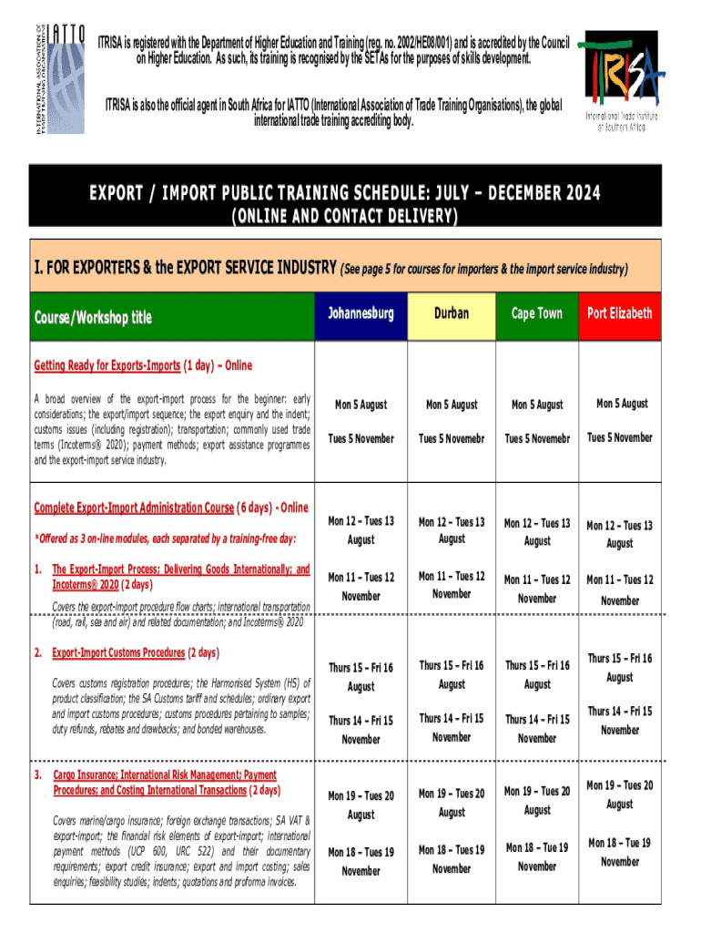ITRISA is registered with the Department of Higher Education and Training (reg. no. 2002/HE08/001) and is accredited by the Council on Higher Education. As such, its training is recognised by the