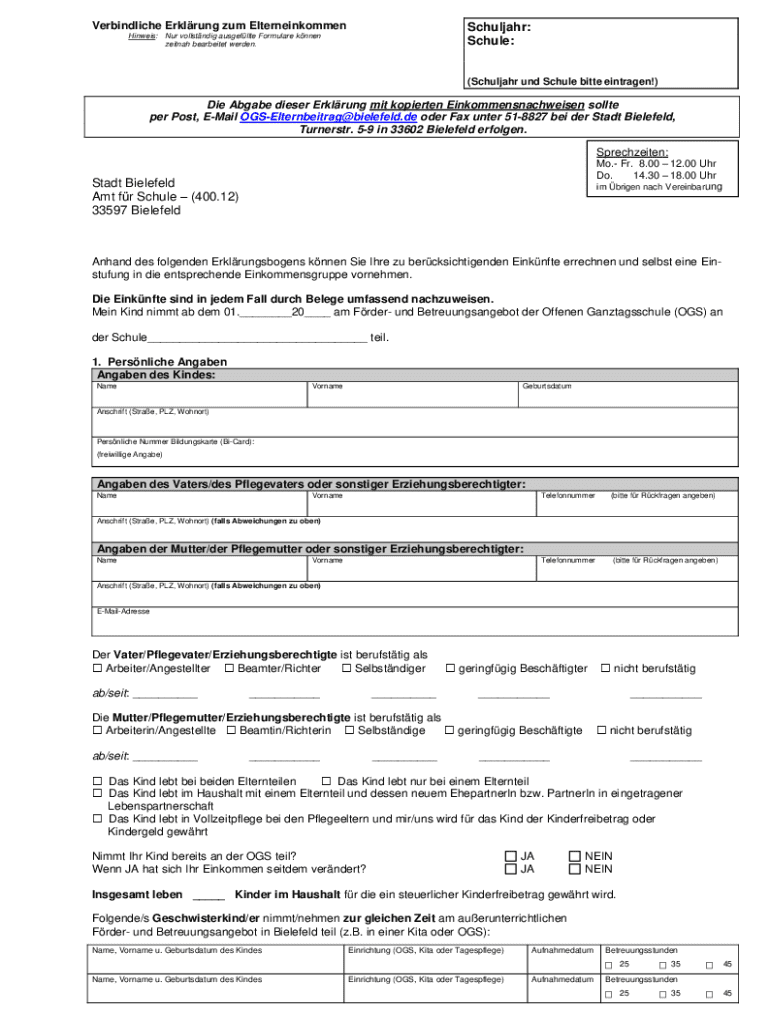 Die Schulen in Bielefeld müssen das Formular 40012 33597 bielefeld schuljahr einreichen.