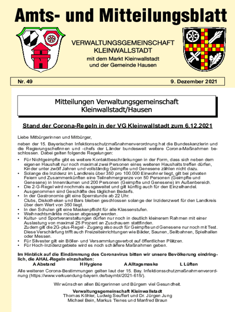 NR. 499. December 2021Stand her CoronaRegeln in her VG Kleinwallstadt sum 6.12.2021