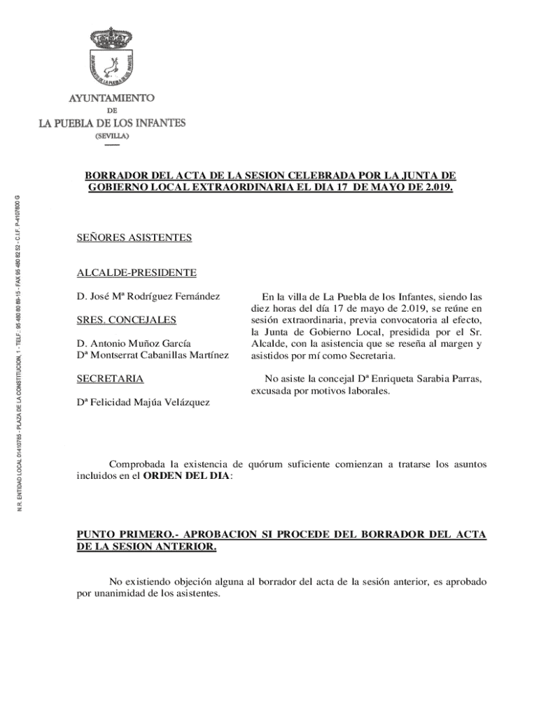GOVERNOR LOCAL EXTRAORDINARY EL DID 17 DE MAYO DE 2.019.STORES ASISTENTESALCALDEPRESIDENTE