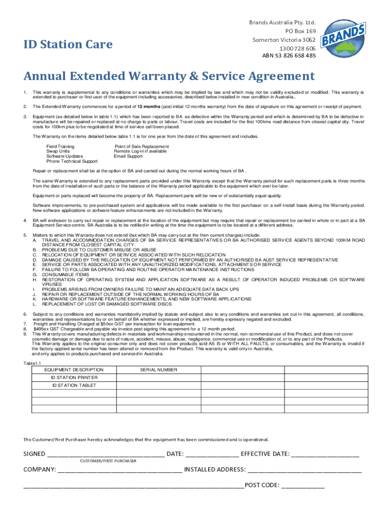 ABN 53 826 658 485ID Station Cardinal Extended Warranty & Service Agreement