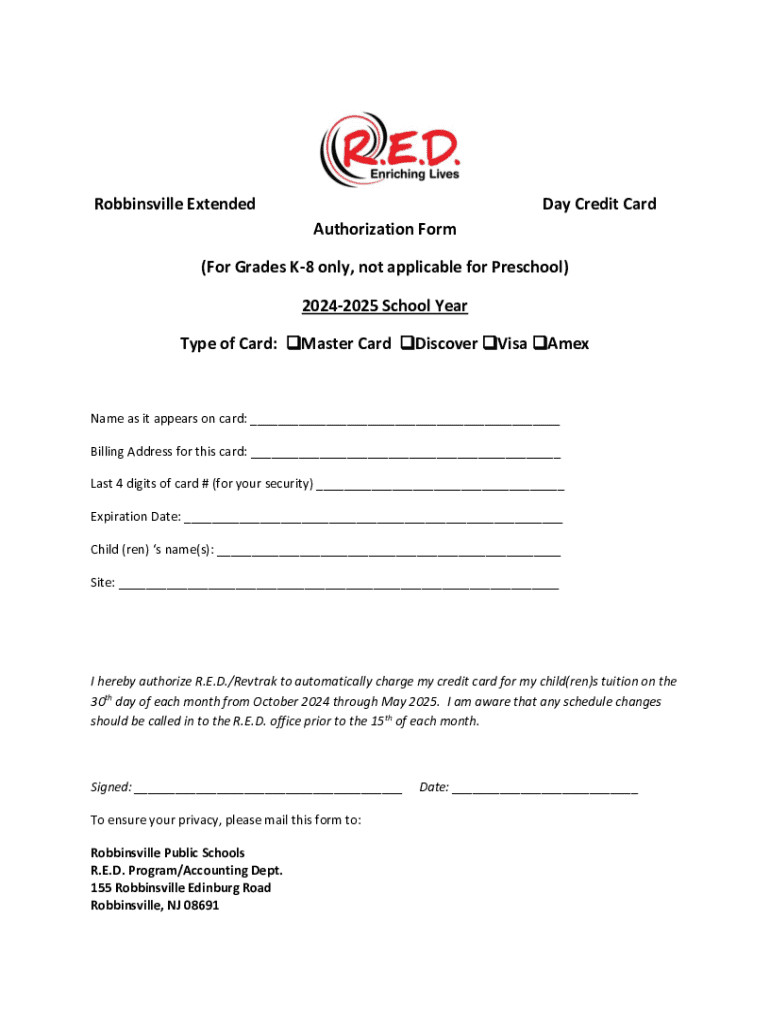 Get the free Robbinsville Extended Day Credit Card Authorization Form ...