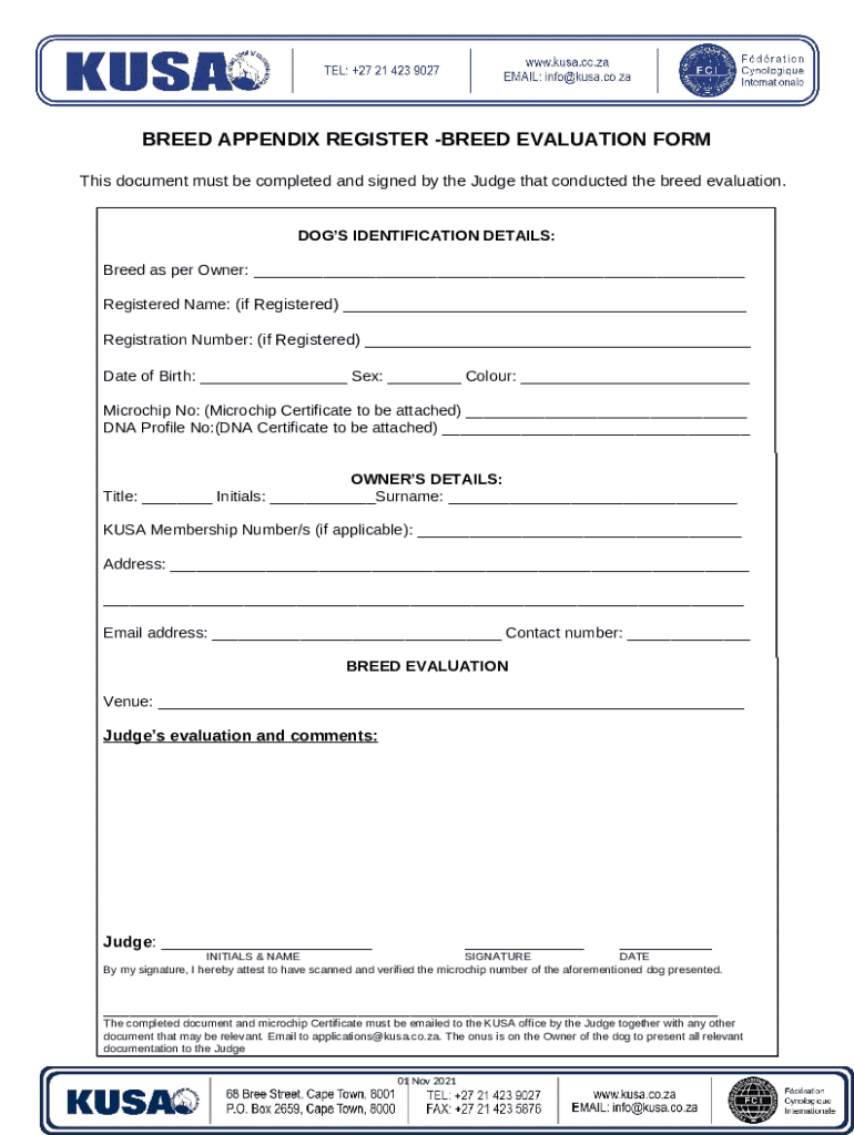 The Registering your puppyDog breedingKennel Club is a Word document that can be filled-out and signed for specified reasons. Then, it is furnished to the actual addressee to provide some details of certain kinds. The completion and signing may be done in hard copy or using a trusted solution like PDFfiller. Such applications help to fill out any PDF or Word file without printing them out. It also allows you to customize it according to the needs you have and put an official legal digital signature. Once done, the user ought to send the Registering your puppyDog breedingKennel Club to the recipient or several recipients by mail and also fax. PDFfiller is known for a feature and options that make your document of MS Word extension printable. It provides different settings when printing out appearance. No matter, how you will send a form after filling it out - in hard copy or electronically - it will always look professional and clear. In order not to create a new writable document from scratch every time, make the original Word file as a template. Later, you will have a customizable sample.