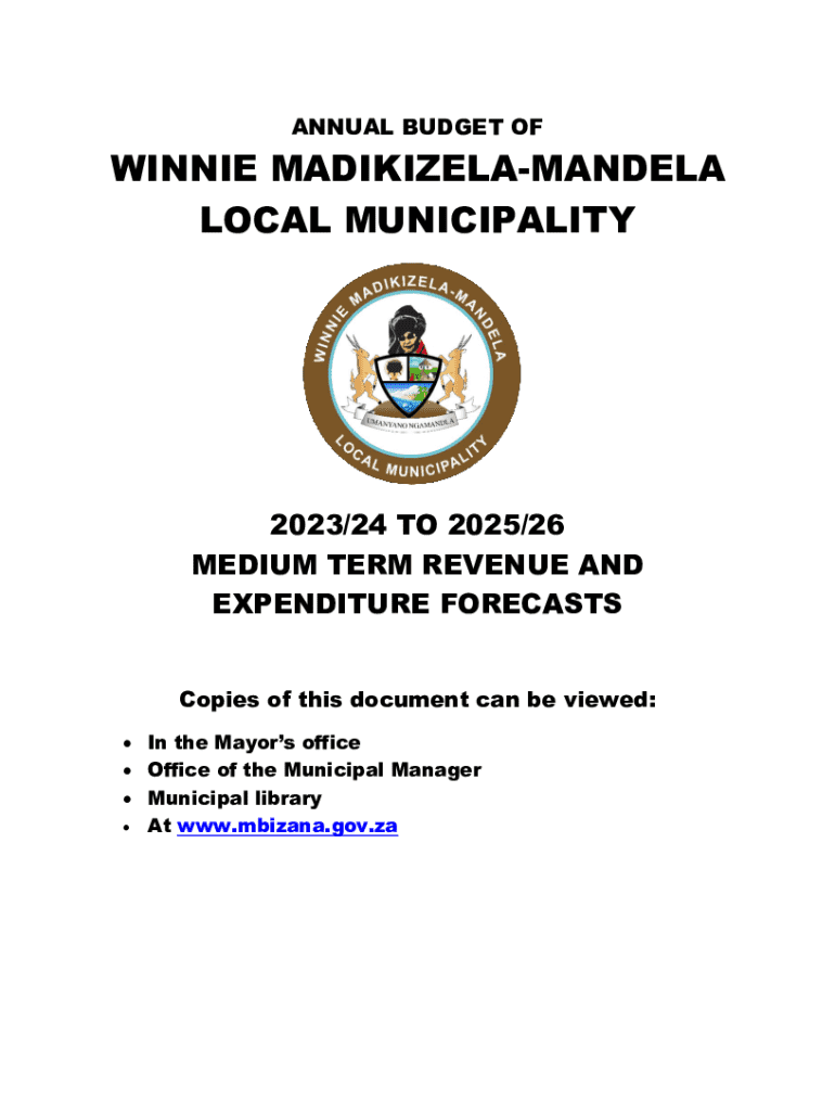 ANNUAL BUDGET OFWINNIE MADIKIZELAMANDELA LOCAL MUNICIPALITY2023/24 TO 2025/26 MEDIUM TERM REVENUE AND EXPENDITURE FORECASTS Copies of this document can be viewed: In the Mayors office Office of the
