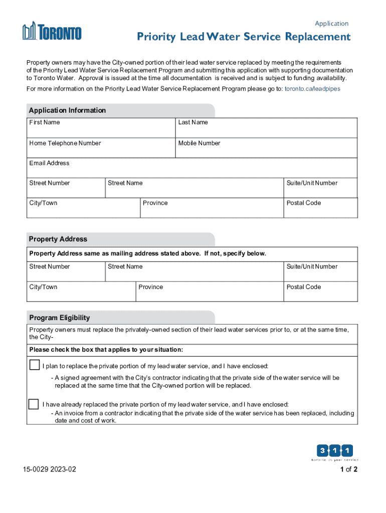 This document contains both information and form fields. To read information, use the Down Arrow from a form field. ApplicationPriority Lead Water Service Replacement Property owners may have the