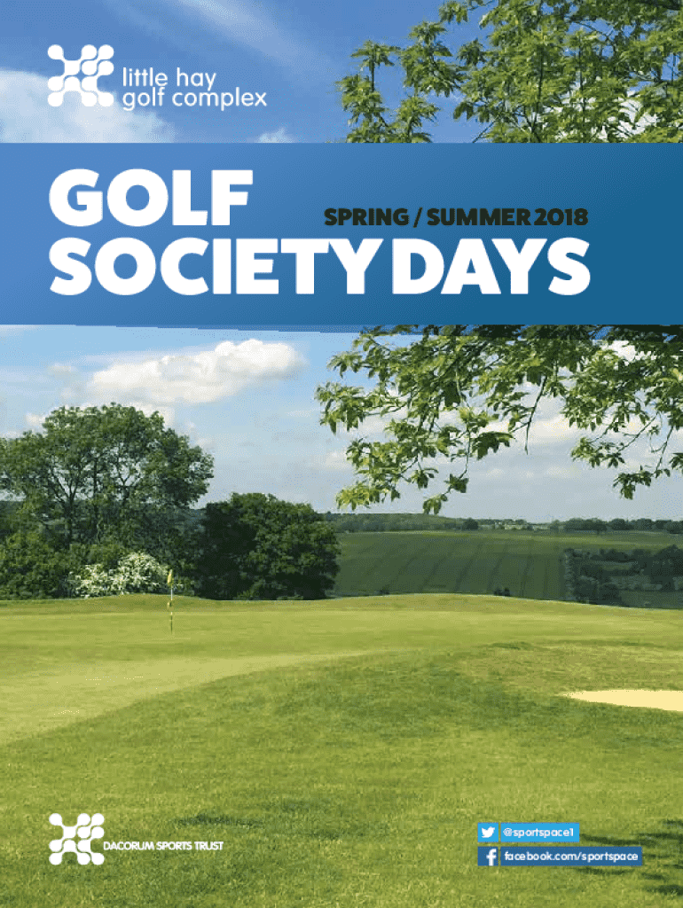 GOLF SOCIETY DAYS SPRING / SUMMER 2018@sportspace1 facebook.com/sportspaceLITTLE HAY GOLF COMPLEX SPRING/SUMMER GOLF SOCIETY DAYS Whether you are a keen golfer or have never played before, we welcome
