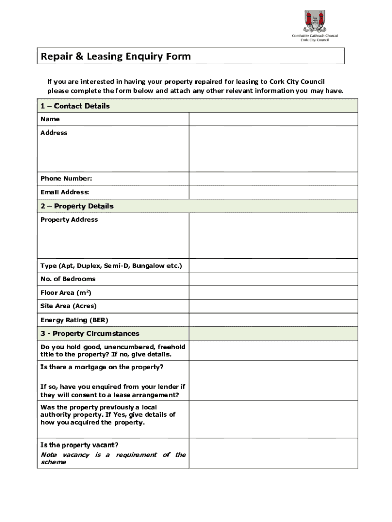 If you are interested in having your property repaired for leasing to Cork City Council