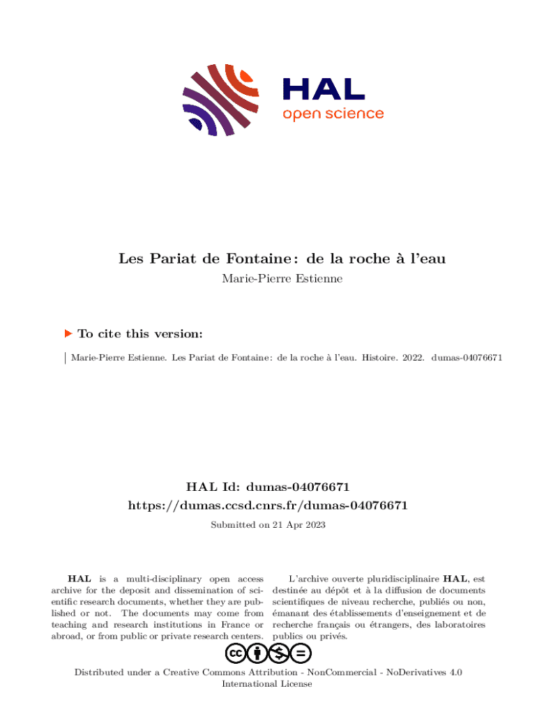 Les Pariat de Fontaine : de la roche leau MariePierre EstienneTo cite this version: MariePierre Estienne. Les Pariat de Fontaine : de la roche leau. Histoire. 2022. dumas04076671HAL Id: dumas04076671