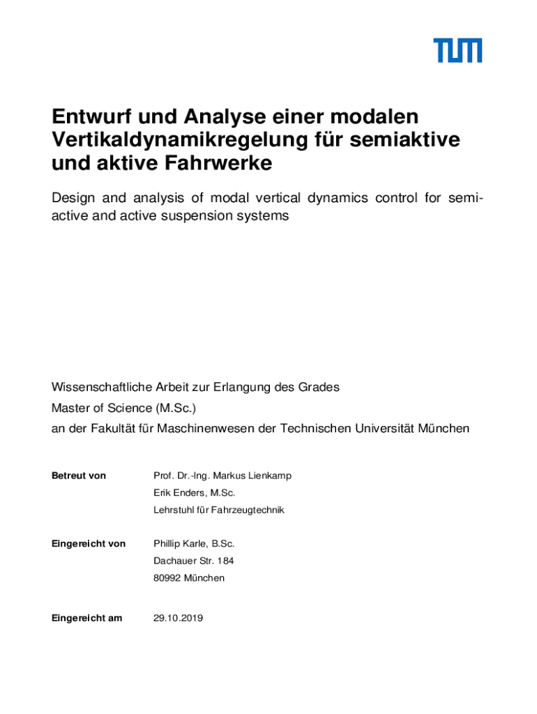 Holen Sie sich kostenlos Modal Vertical Vehicle Dynamics Control for Semi-Active ...