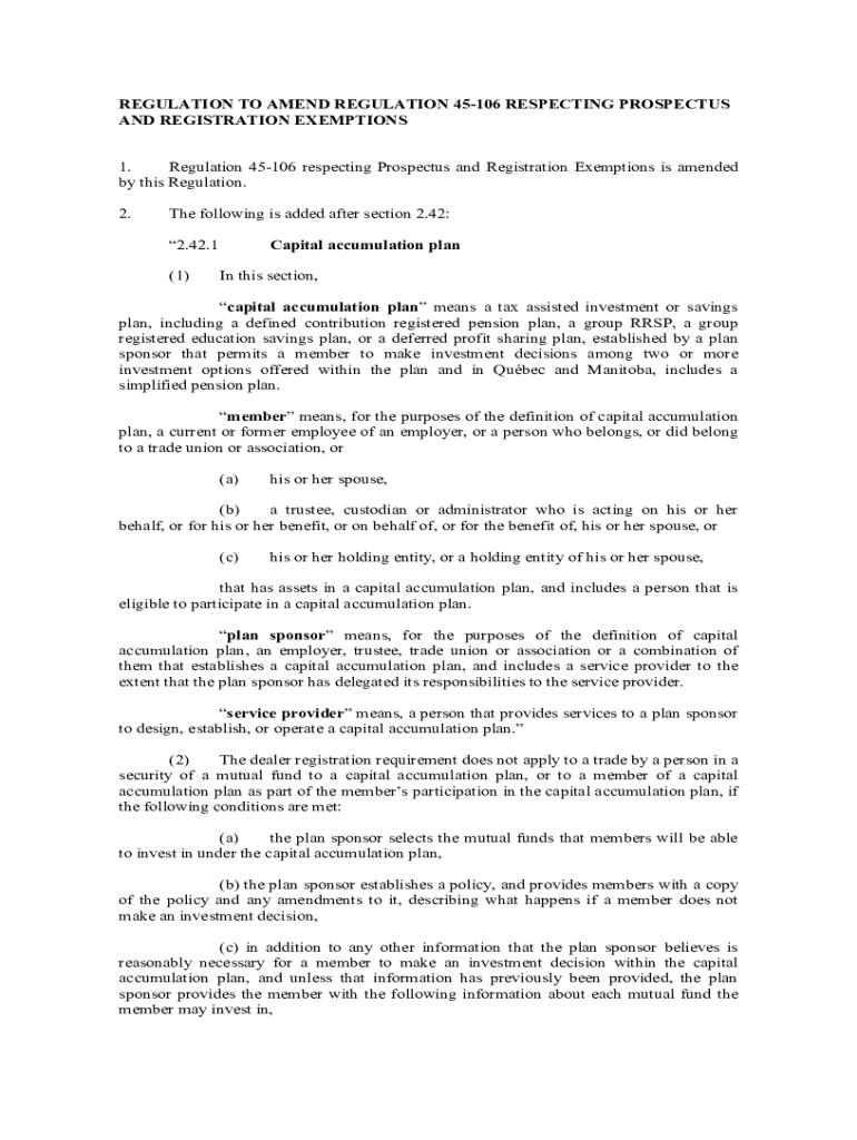 Get the free Regulation to amend Regulation 45-106 respecting ... - lautorite qc
