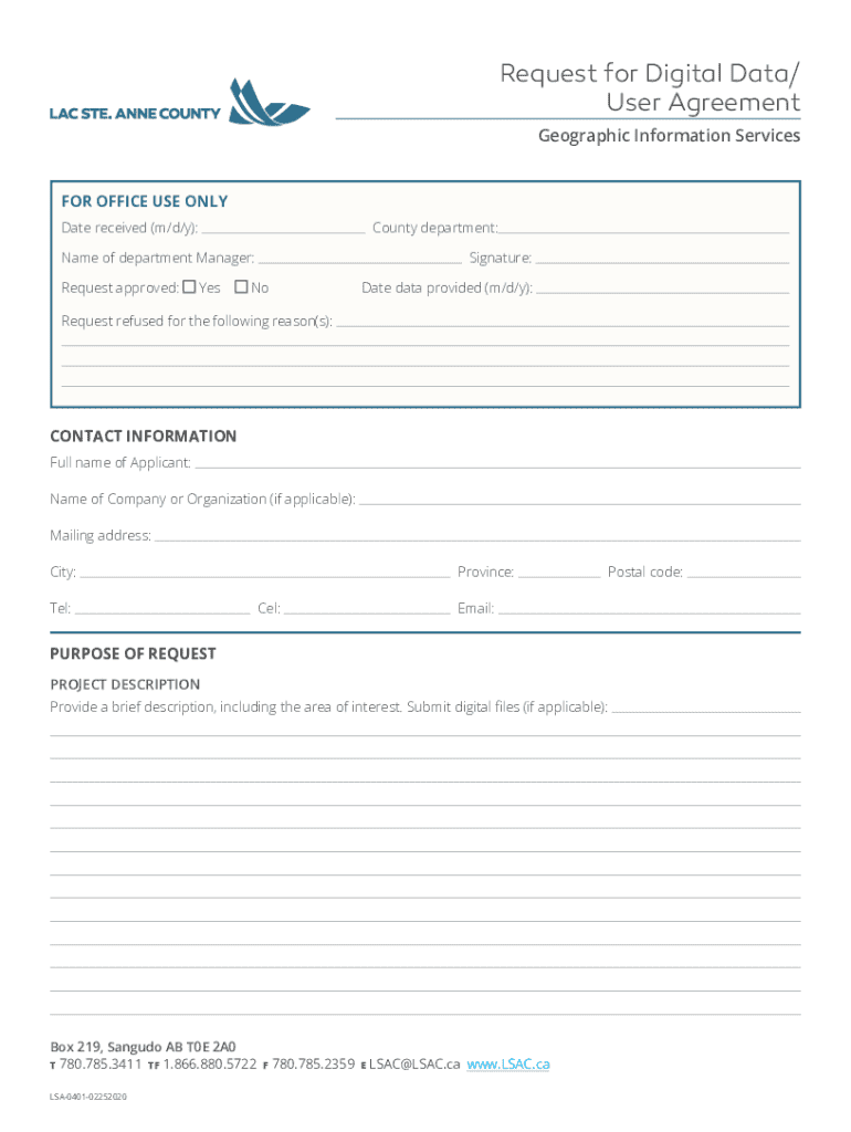 To fill out a request for digital data, one must typically provide their contact information, details of the information being requested, and any supporting documentation.