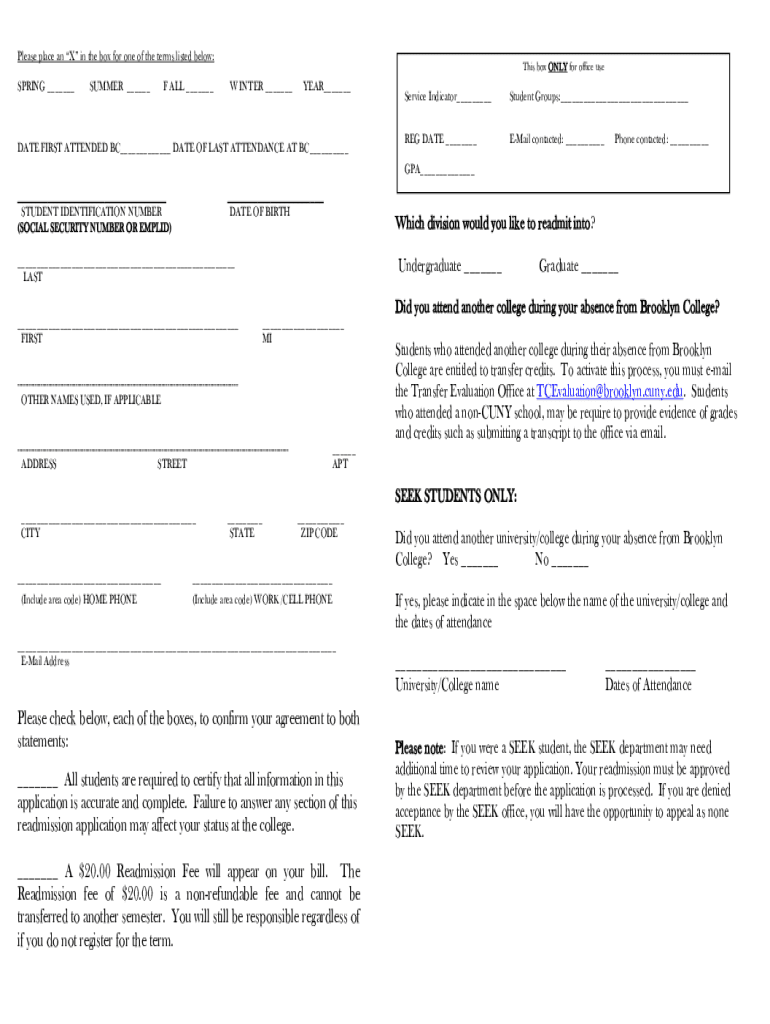 Once you are accepted and registered, a $20 Readmission Fee will appear on your bill. This fee is nonrefundable and cannot be transferred to another semester. Students who were accepted through our