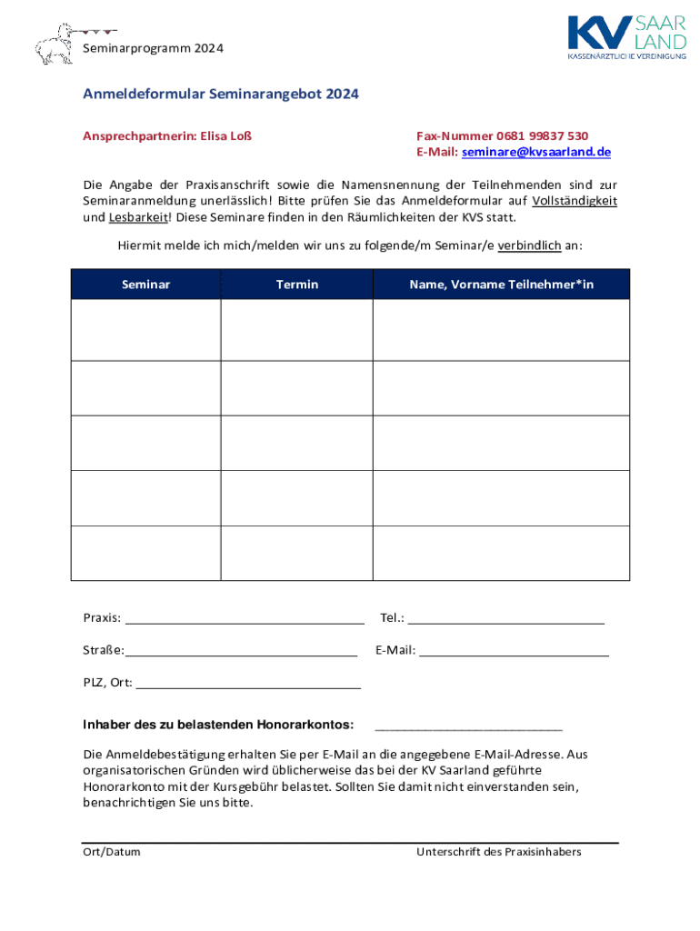 Email: seminare@kvsaarland.deDie Angle her Praxisanschrift Bowie die Namensnennung her Teilnehmenden
