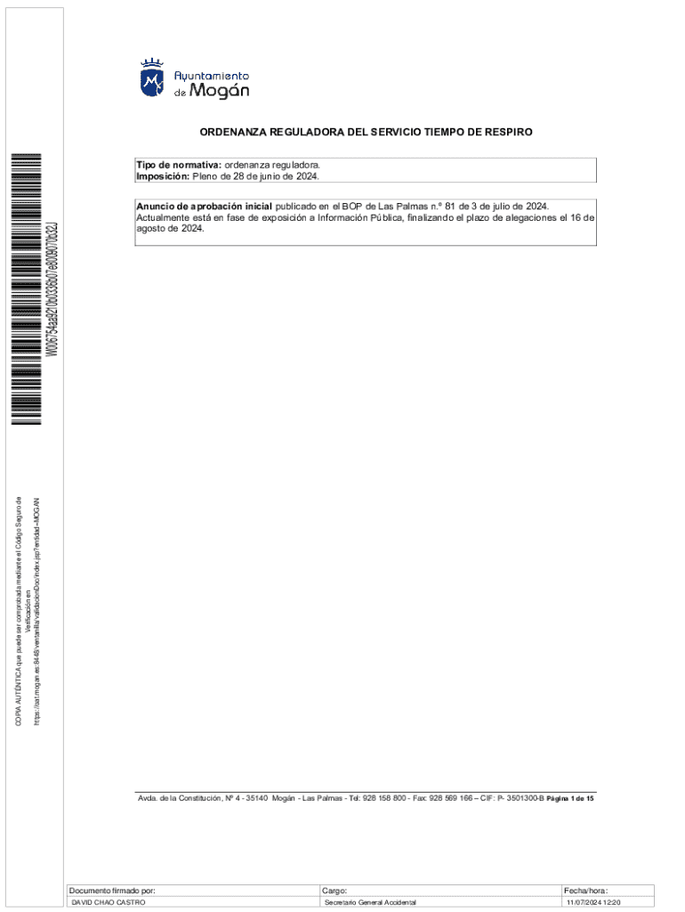 ORDINANCE REGULATORY DEL SERVICE TEMPO DE RESPIROAnuncio de probation initial public ado en El BOP de Las Palmas n. 81 DE 3 de Julio de 2024.