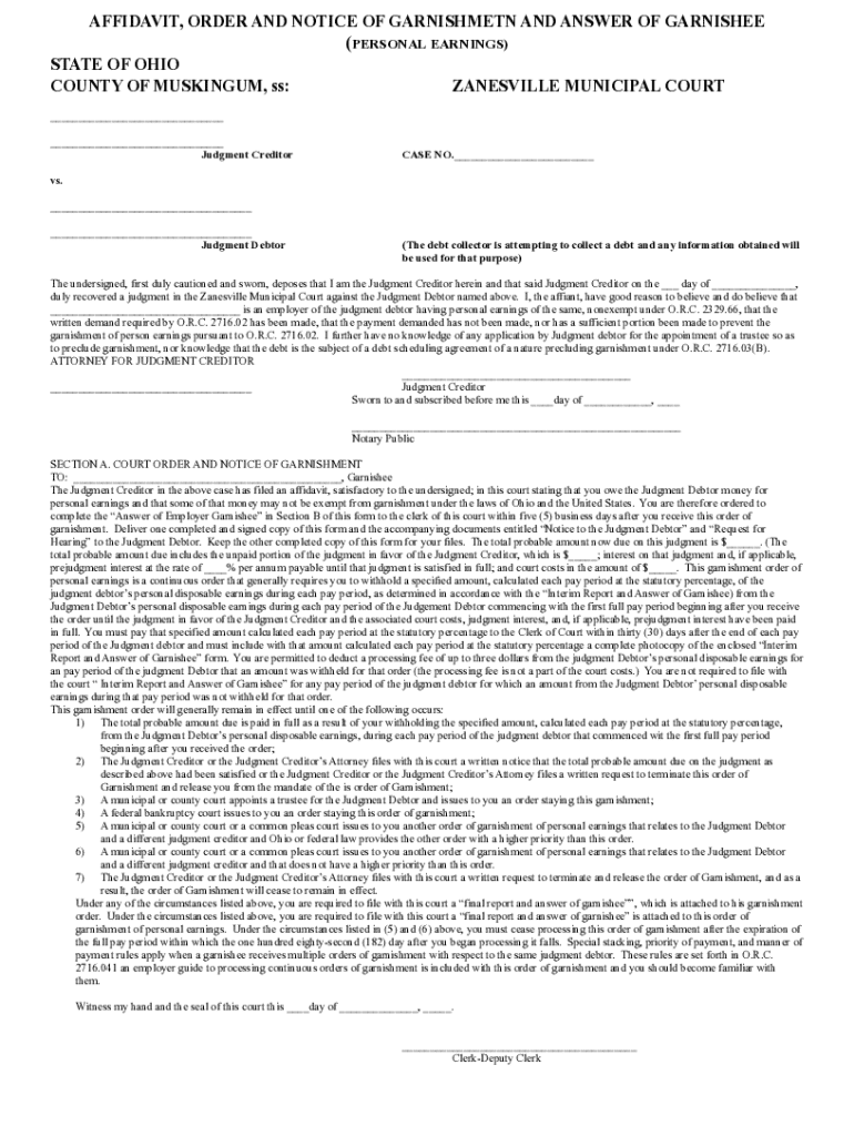 Get the free affidavit, order and notice of garnsihment of property other ...
