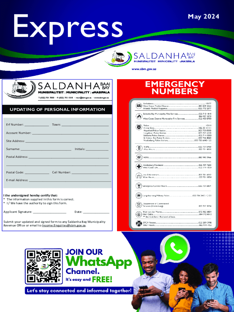 ExpressMay 2024www.sbm.gov.zaT: (022) 701 7000 F: (022) 715 1518 mun@sbm.gov.za www.sbm.gov.zaUPDATING OF PERSONAL INFORMATION Erf Number: ___ Town: ___ Account Number: ___ Site Address: ___ Surname: