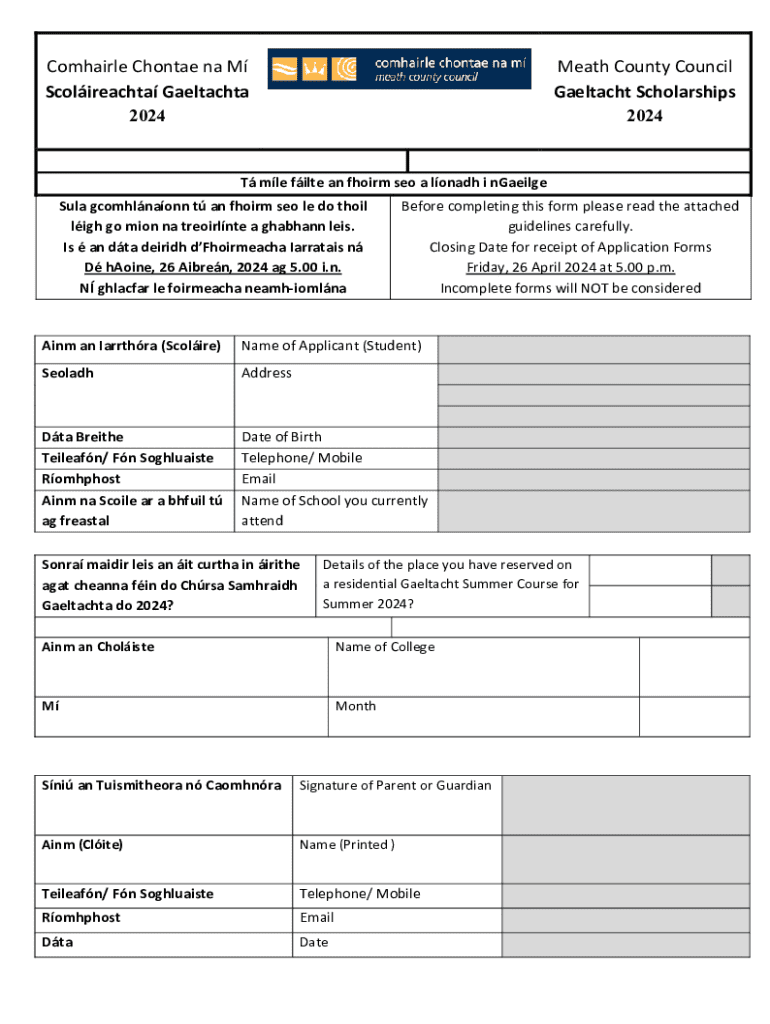 Gaeltacht Scholarships20242024T me file a form SEO a load i garage