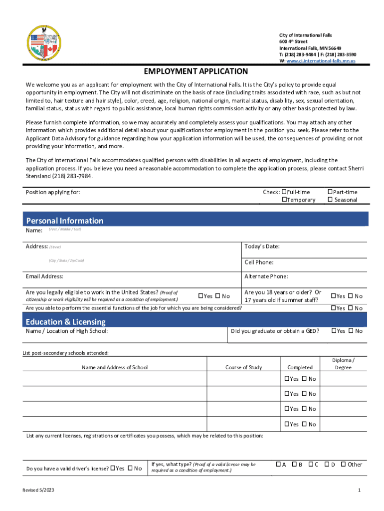CITY OF INTERNATIONAL FALLS IS ACCEPTING APPLICATIONS FOREST (EMERGENCY MEDICAL TECHNICIAN) 1. This part time position offers a flexible schedule of sign up shifts and standby. 2. Sign up shifts receive