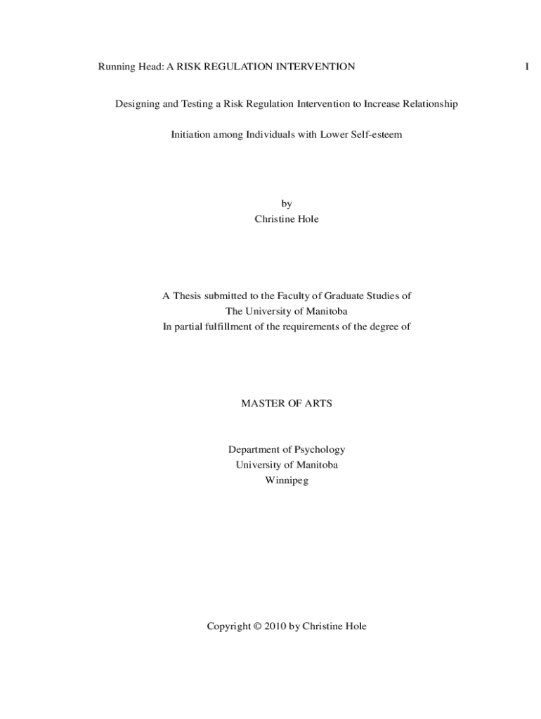 Running Head: A RISK REGULATION INTERVENTIONDesigning and Testing a Risk Regulation Intervention to Increase Relationship Initiation among Individuals with Lower Selfesteemby Christine Hole Thesis