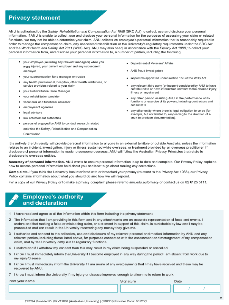 How to fill out anu workers compensation claim