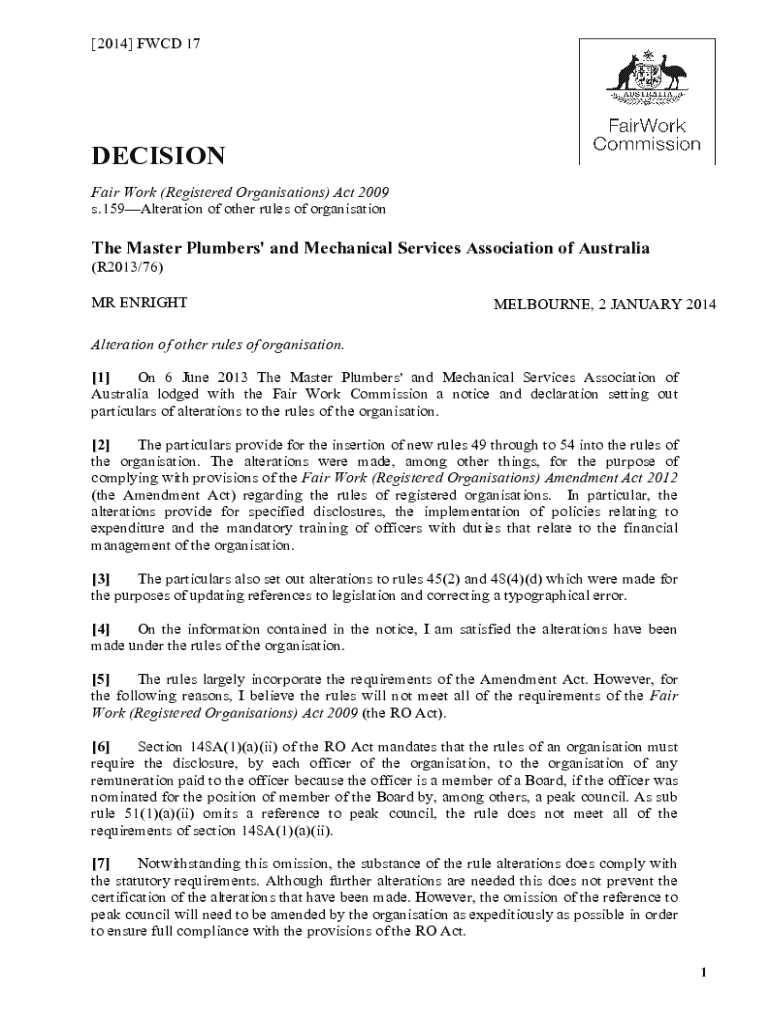 s.159Alteration of other rules of organisationThe Master Plumbers\' and Mechanical Services Association of Australia