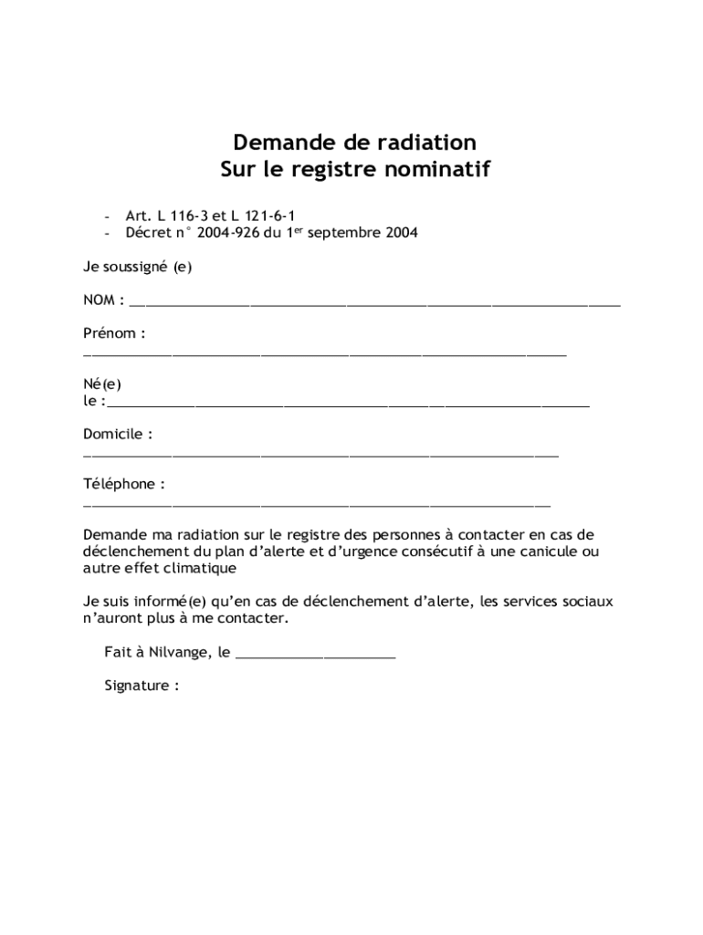 Obtenir le gratuit Demande de radiation Sur le registre nominatif