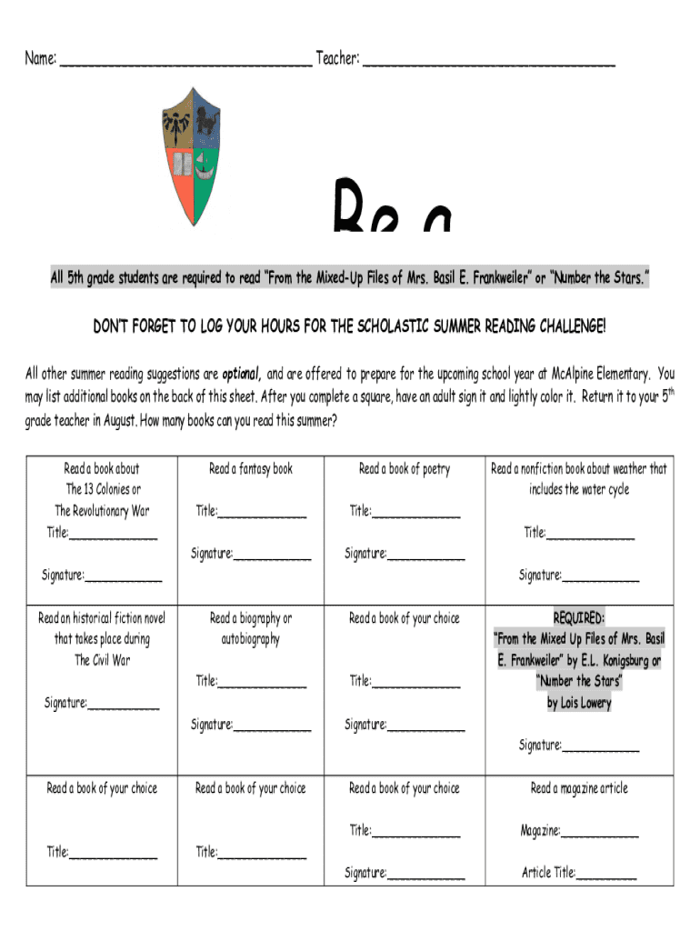 Seawall 5th grade students are required to read From the Mixed Files of Mrs. Basil E. Tranquiler or Number the Stars.DON'T FORGET TO LOG YOUR HOURS FOR