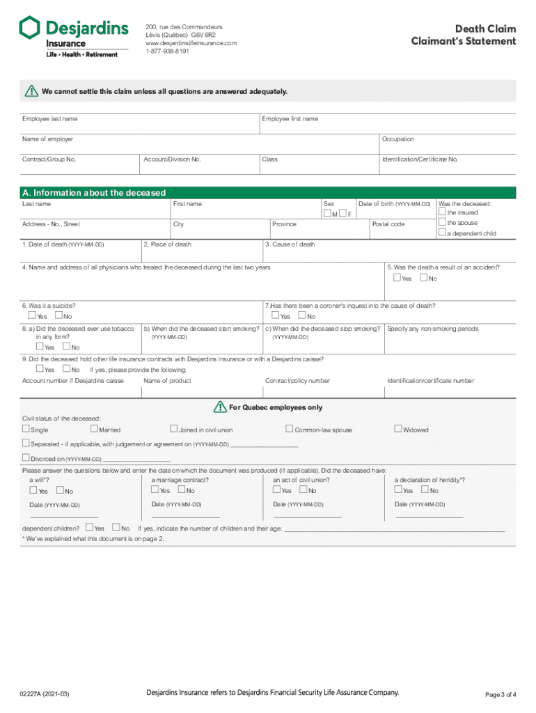 Get the free Life Insurance Claim Form Claimant's Statement