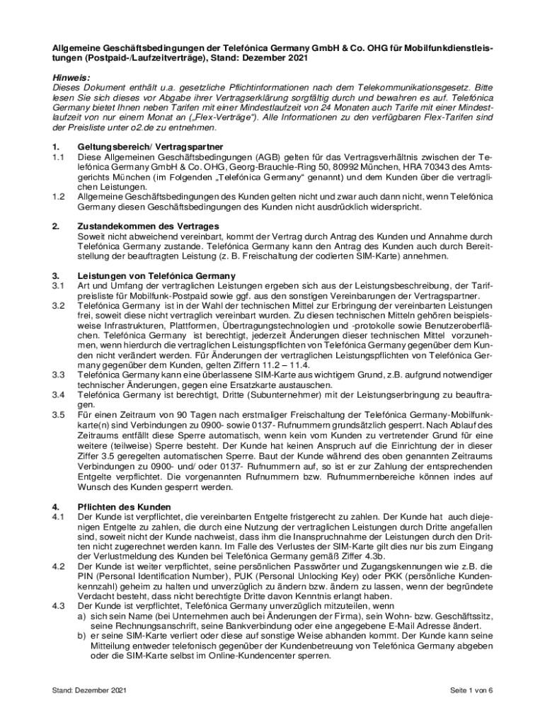 Allegiance Geschftsbedingungen her Telefonica Germany GmbH & Co. OH for Mobilfunkdienstleistungen (Postpaid/Laufzeitvertrge), Stand: December 2021