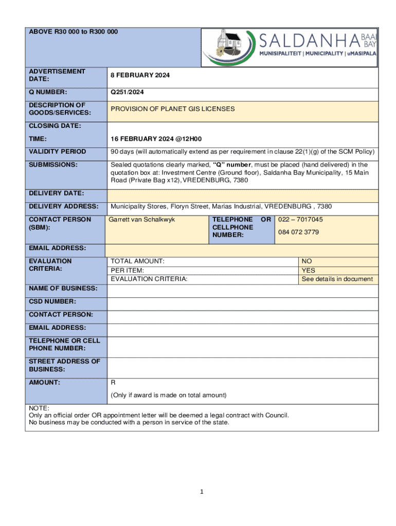 GOODS/SERVICES:PROVISION OF PLANET GIS LICENSESCLOSING DATE: