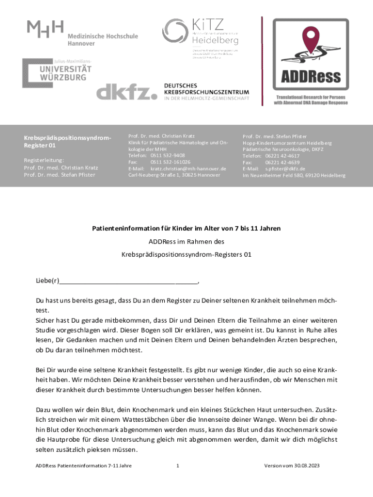 KrebsprdispositionssyndromRegister 01 Registerleitung: Prof. Dr. med. Christian Kratz Prof. Dr. med. Stefan PfisterProf. Dr. med. Christian Kratz Link for Pdiatrische Hematologic UND Oncologic her