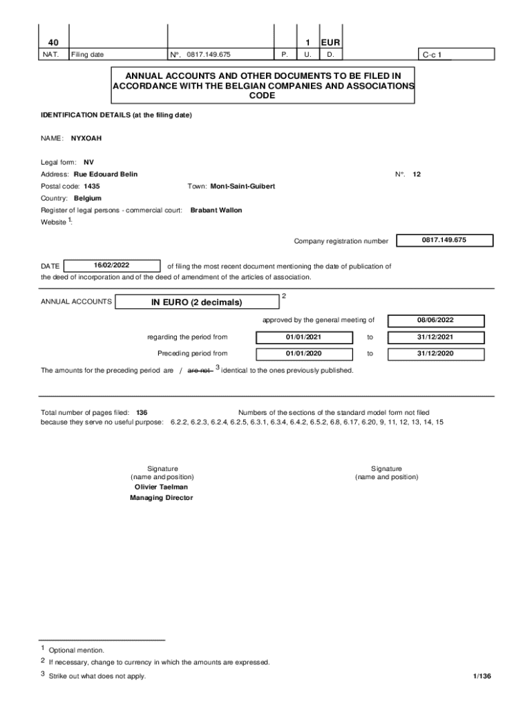 NAT. N. 0817.149.675Filing date.1EURU. D. Cc 1ANNUAL ACCOUNTS AND OTHER DOCUMENTS TO BE FILED IN