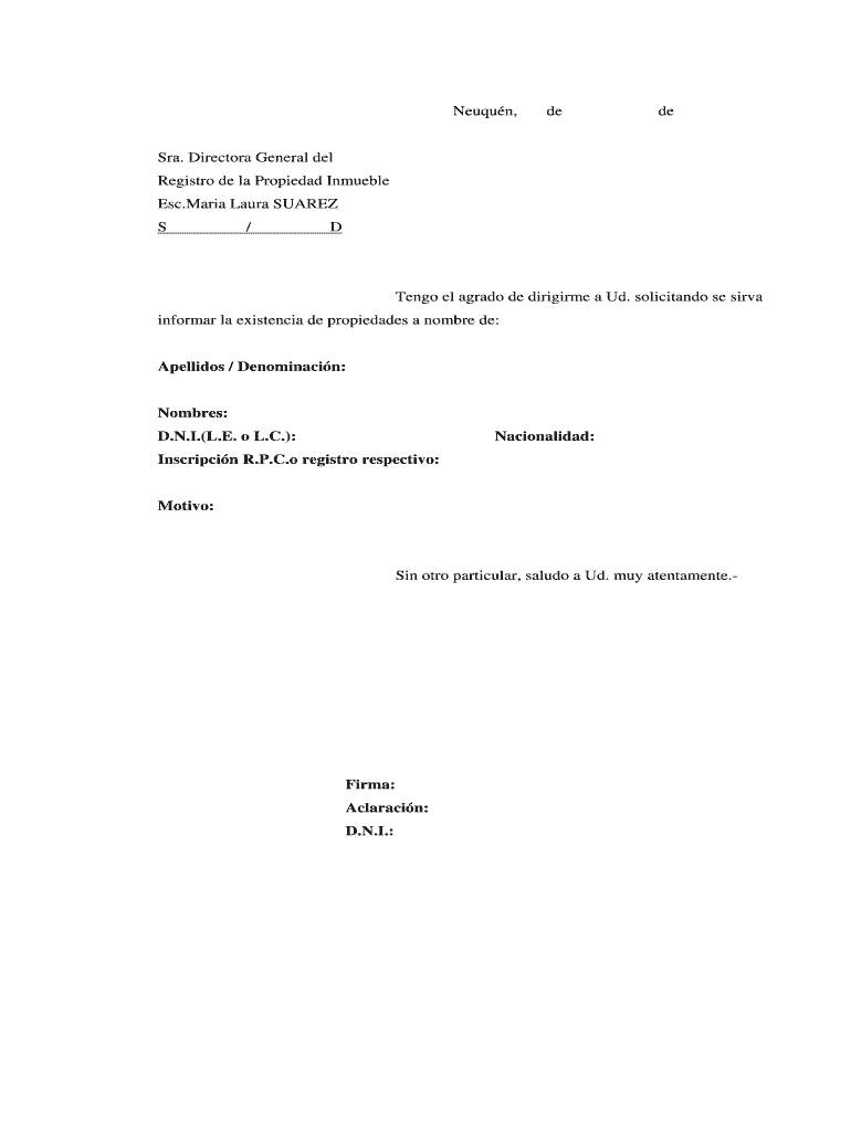 Get the free nota modelo informe de titularidad.doc - jusneuquen gov
