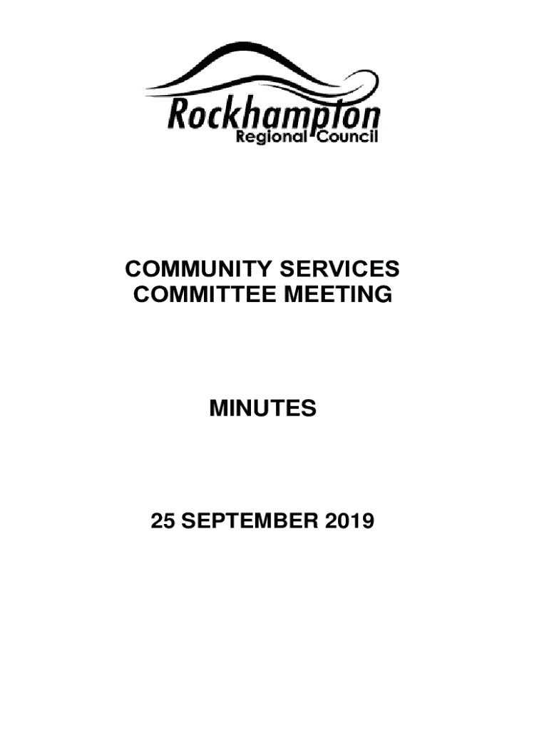 COMMUNITY SERVICES COMMITTEE MEETINGMINUTES25 SEPTEMBER 2019COMMUNITY SERVICES COMMITTEE MINUTES25 SEPTEMBER 2019TABLE OF CONTENTS ITEMSUBJECTPAGE NO1OPENING.................................................................................................................