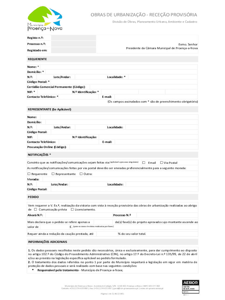 O alvar deve ser preenchido conforme exigências da legislação municipal.