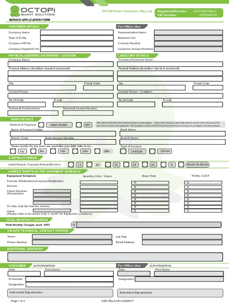 VAT Number:SERVICE APPLICATION FORM