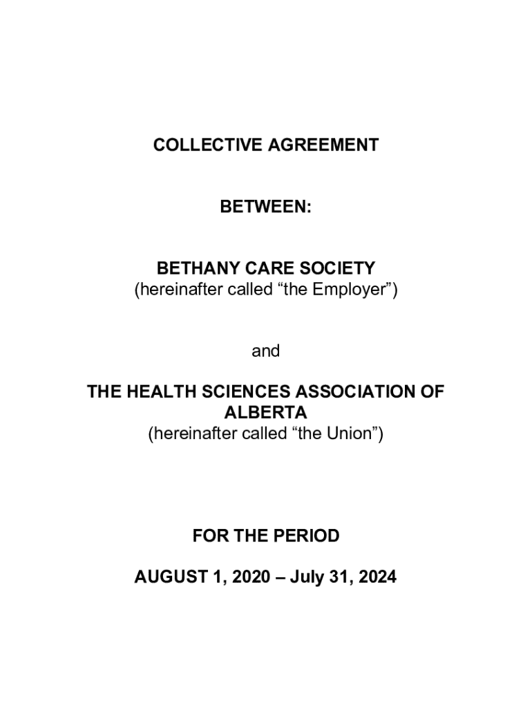 COLLECTIVE AGREEMENT BETWEEN: BETHANY CARE SOCIETY (hereinafter called the Employer) and THE HEALTH SCIENCES ASSOCIATION OF ALBERTA (hereinafter called the Union)FOR THE PERIOD AUGUST 1, 2020, July