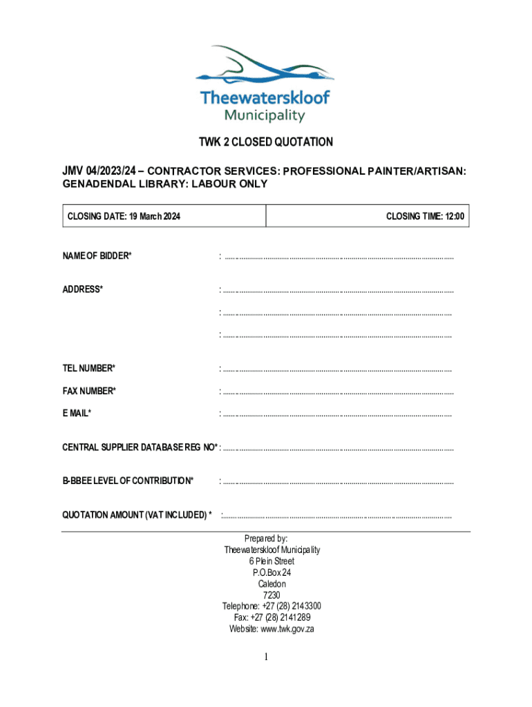 MV 04/2023/24 CONTRACTOR SERVICES: PROFESSIONAL PAINTER/ARTISAN: