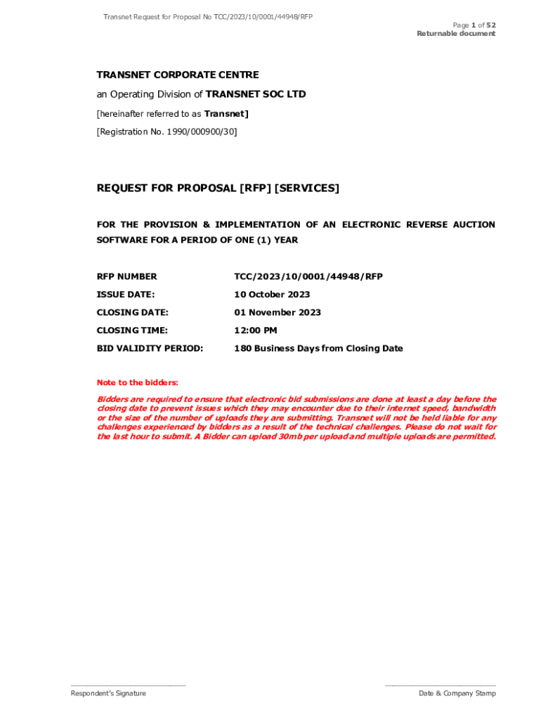 Get the free Transnet Request for Proposal No TCC/2023/10/0001/44948/RFP