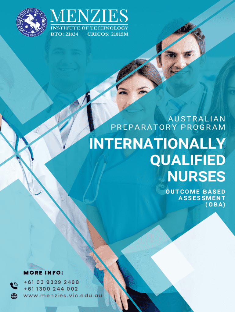 AUSTRALIAN PREPARATORY PROGRAMINTERNATIONALLY QUALIFIED NURSES OUTCOME BASED ASSESSMENT (OBA)MORE INFO: +61 03 9329 2488 +61 1300 244 002 www.menzies.vic.edu.auAbout the Program Menzies Institute