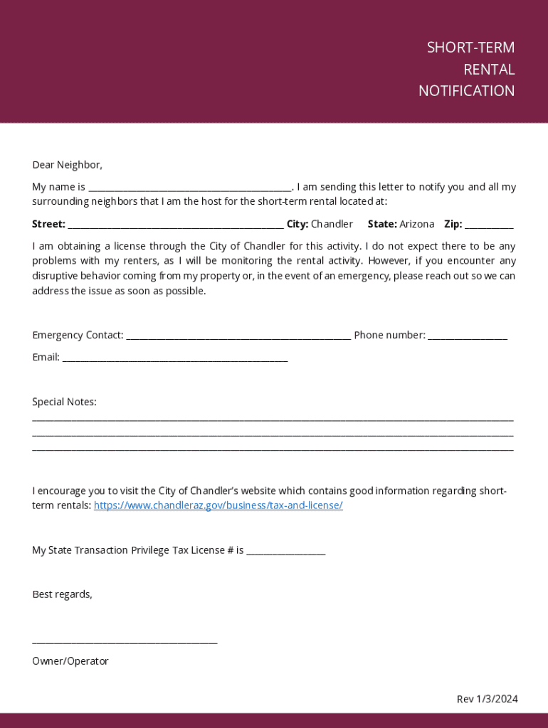 Get the free Templates: Short-Term Rental Neighbor Notification Letters