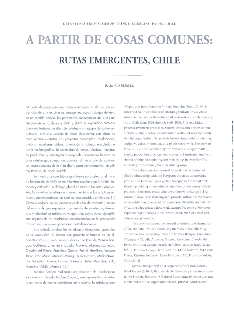 JULIA P. HERBERT\” A part de costs communes: Ruts emergent es, Chile\” BS RNA ex\”Departures