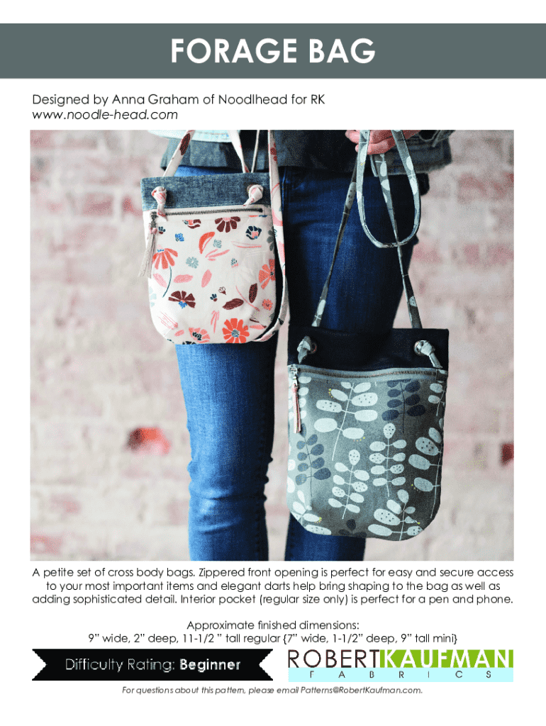 Just Kisses FORAGE BAG Designed by Anna Graham of Noodlhead for RK www.noodlehead.comA petite set of cross body bags. Zippered front opening is perfect for easy and secure access to your most important