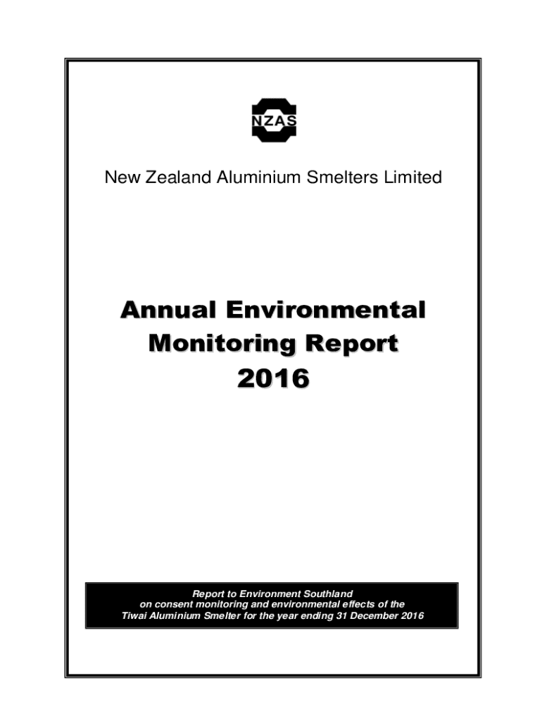 New Zealand Aluminium Smelters LimitedAnnual Environmental Monitoring Report2016Report to Environment Southland on consent monitoring and environmental effects of the Tiwai Aluminium Smelter for the